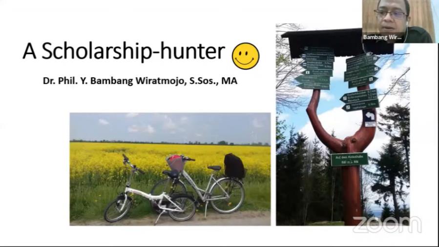 Bambang Wiratmojo opens this webinar with a topic called “A Scholarship-Hunter”. The story of him received at the second option of UMPTN which is Communication Science of Diponegoro University became the first topic that he talked about.