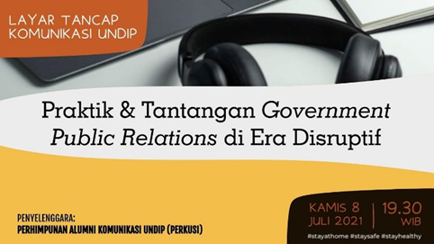Semarang—Alumni Association of Communication Undip on Thursday, July 8, 2021, held an alumni discussion entitled “Layar Tancap Komunikasi Undip” online through the Zoom Meeting platform. The topic of discussion that was raised at this forum was “Practices and Challenges of Government Public Relations in the Disruptive Era”. This event was opened by Cicilia Sinabariba (alumni of class 2014) as MC and moderated by Heri Sagiman alumni of class 1994.