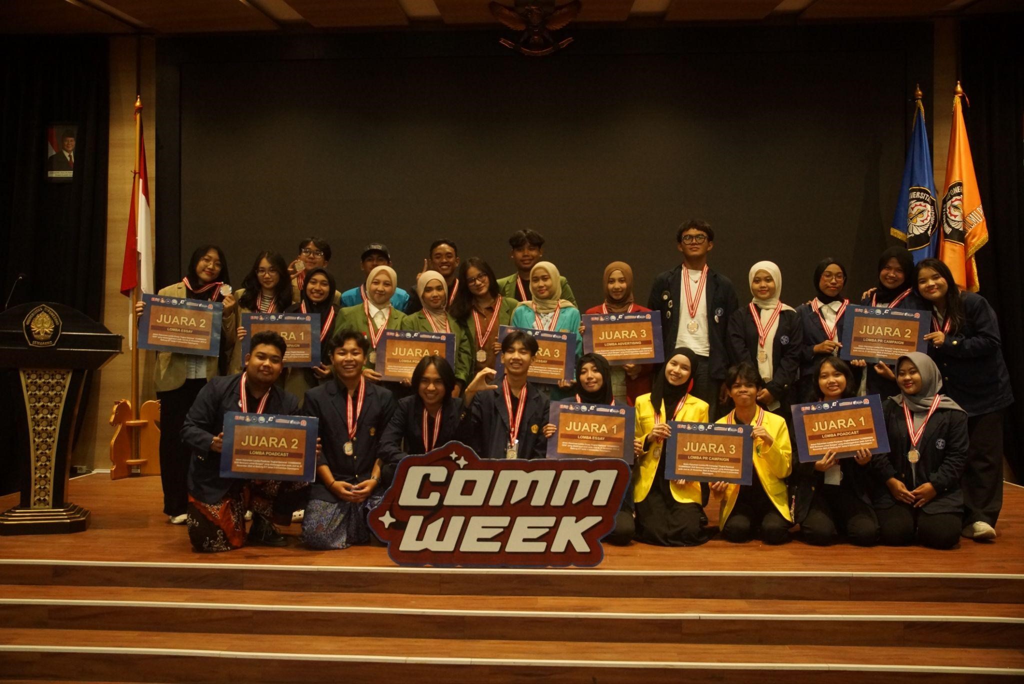 COMMWEEK merupakan program kerja tahunan dari HMPS Ilmu Komunikasi yang mengadakan ajang perlombaan akademik bagi mahasiswa. Tujuan diselenggarakannya COMMWEEK ini adalah sebagai wadah bagi mahasiswa untuk mengembangkan kemampuan di bidang komunikasi serta mengasah kemampuan berpikir kritis untuk memecahkan suatu permasalahan. COMMWEEK tahun 2025 hadir dengan wajah baru dan mengangkat tema “Bersuara untuk Bangsa”. Alasan utama mengangkat tema tersebut karena melihat kondisi sosial-politik Indonesia yang sedang tidak baik-baik saja. Mahasiswa sebagai agent of change diharapkan dapat menghasilkan solusi serta inovasi dari adanya suatu permasalahan di masyarakat.